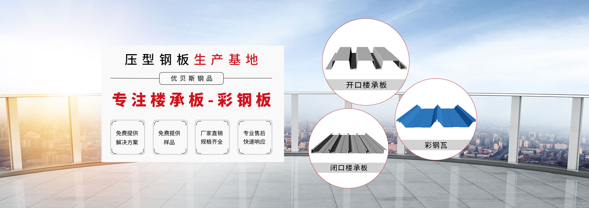 無錫優貝斯鋼品有限公司主要生產:樓承板,鋼承板,免澆筑樓承板,壓型鋼板,彩鋼板,閉口樓承板,開口樓承板,縮口樓承板價格優惠及相關的鋼結構輔材。 優貝斯始終追蹤并處于鋼結構建筑及其圍護系統技術的發展前沿,預制金屬屋墻板面和樓承板系統。優貝斯擁有的技術和豐富實踐一直為客戶提供質量的產品、鋼建筑系統解決方案和貼心的服務。